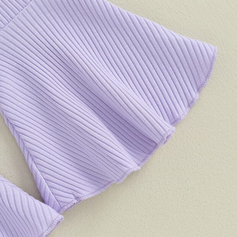 This outfit is a delightful fusion of comfort and fashion. The pink floral pullover adds a touch of elegance to her look with its intricate floral pattern. The flared purple pants are not only a fashionable choice but also provide the ease of movement for her active adventures. This set celebrates her individuality and brings out her vibrant personality.