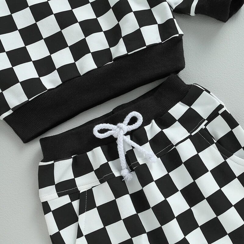 This unisex outfit includes a long sleeve plaid sweatshirt and matching pants, perfect for keeping your toddler cozy and trendy. The plaid pattern adds a touch of timeless charm, while the soft and breathable fabric ensures all-day comfort. Whether it's a playdate, family outing, or special occasion, this outfit is a go-to choice. Mix and match with other pieces in their wardrobe for endless styling options.