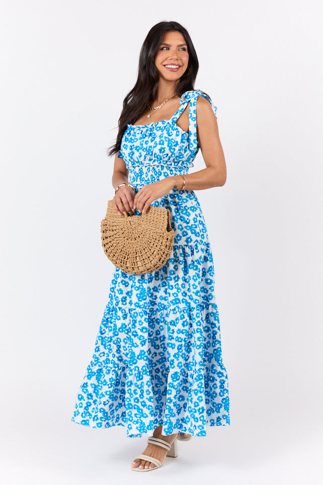 - Floral Tie Shoulder Maxi Dress Blue/White