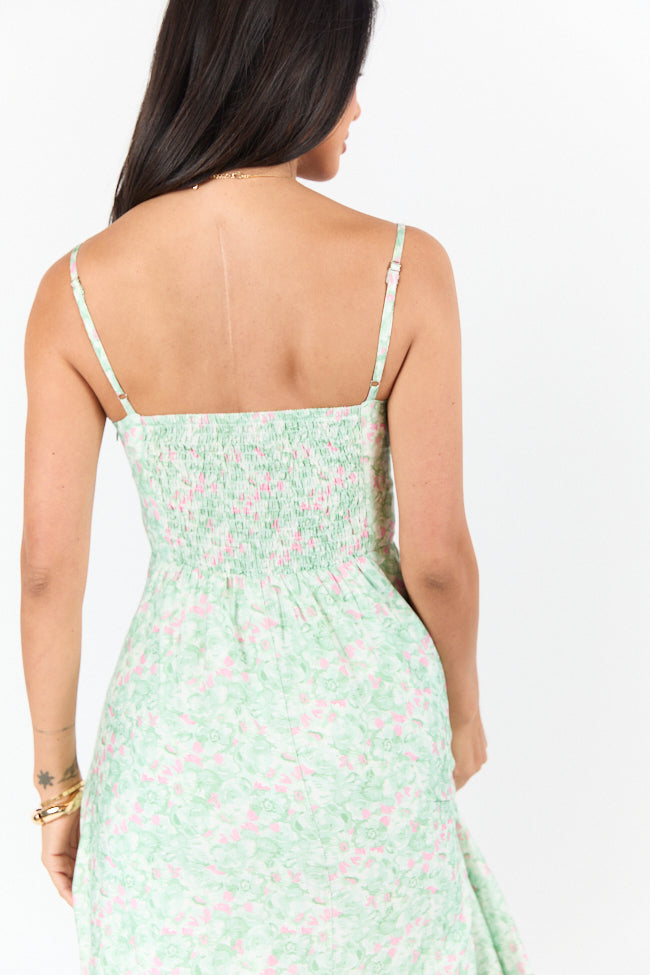 - Adjustable straps, cup detailing, side zipper closure, smocked back