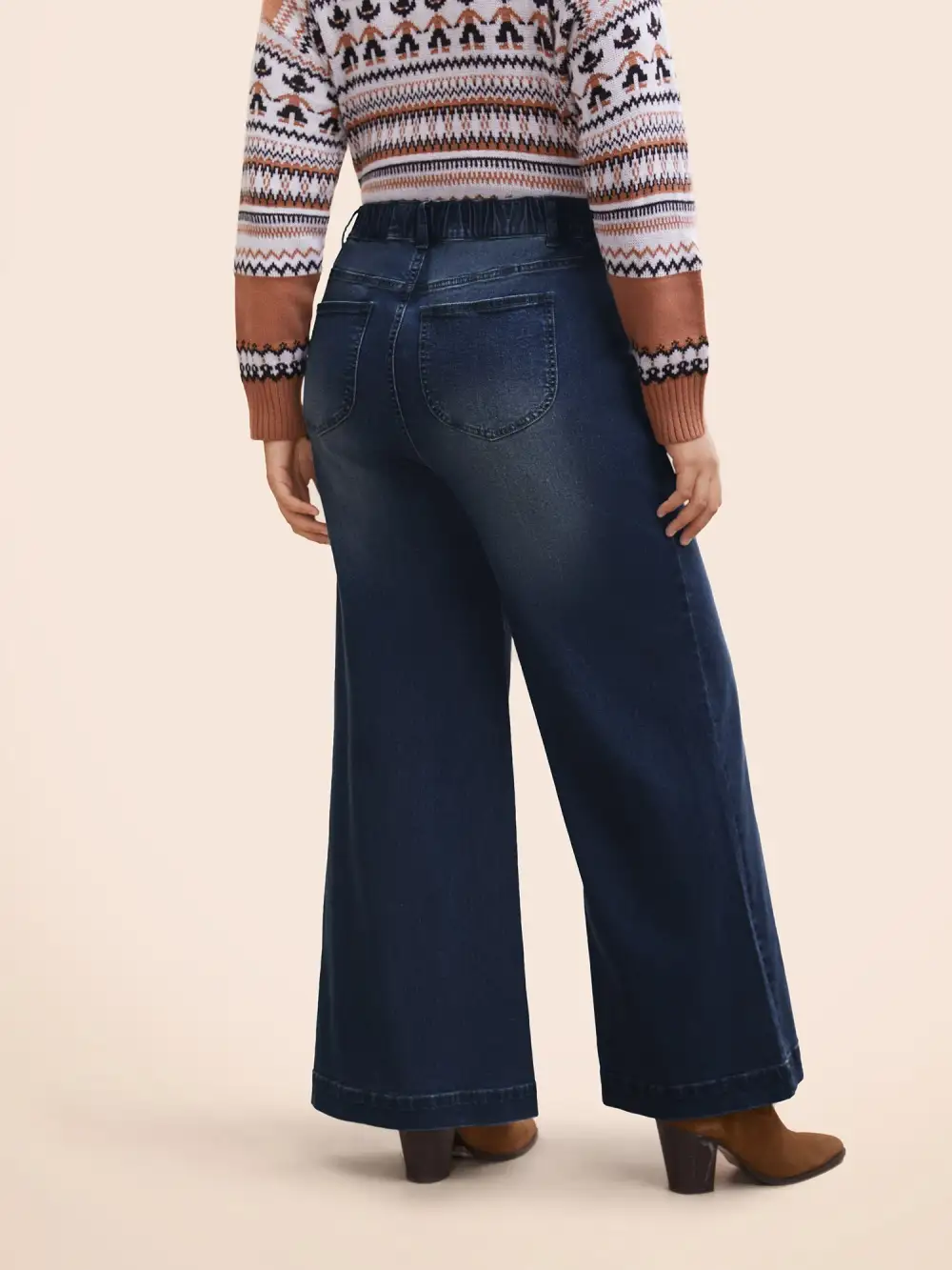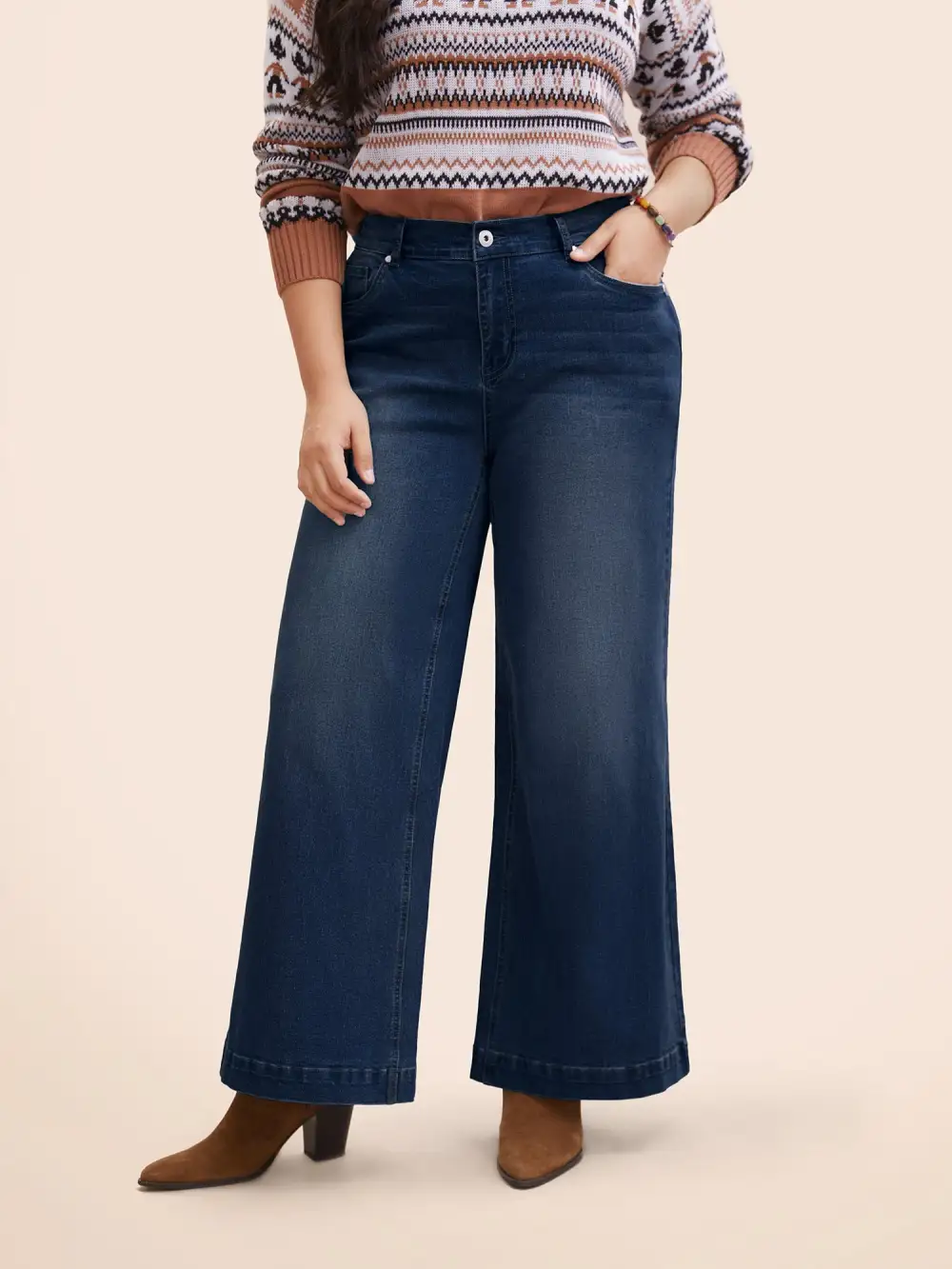 Stretch Denim Wide Leg Cut Jeans