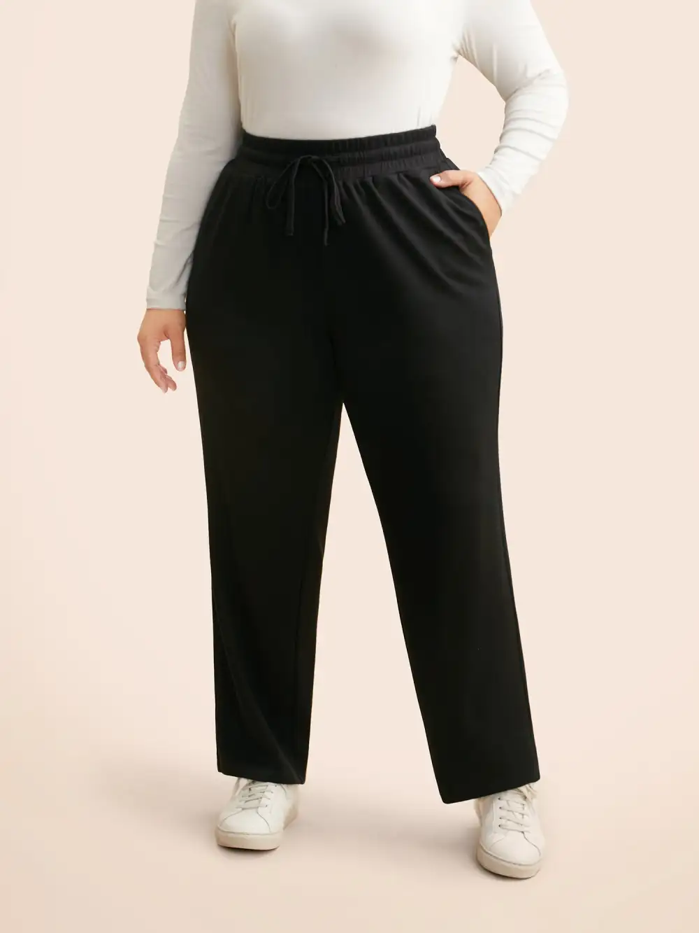 Plain Wrap Hem Wideband Waist Wide Leg Pants