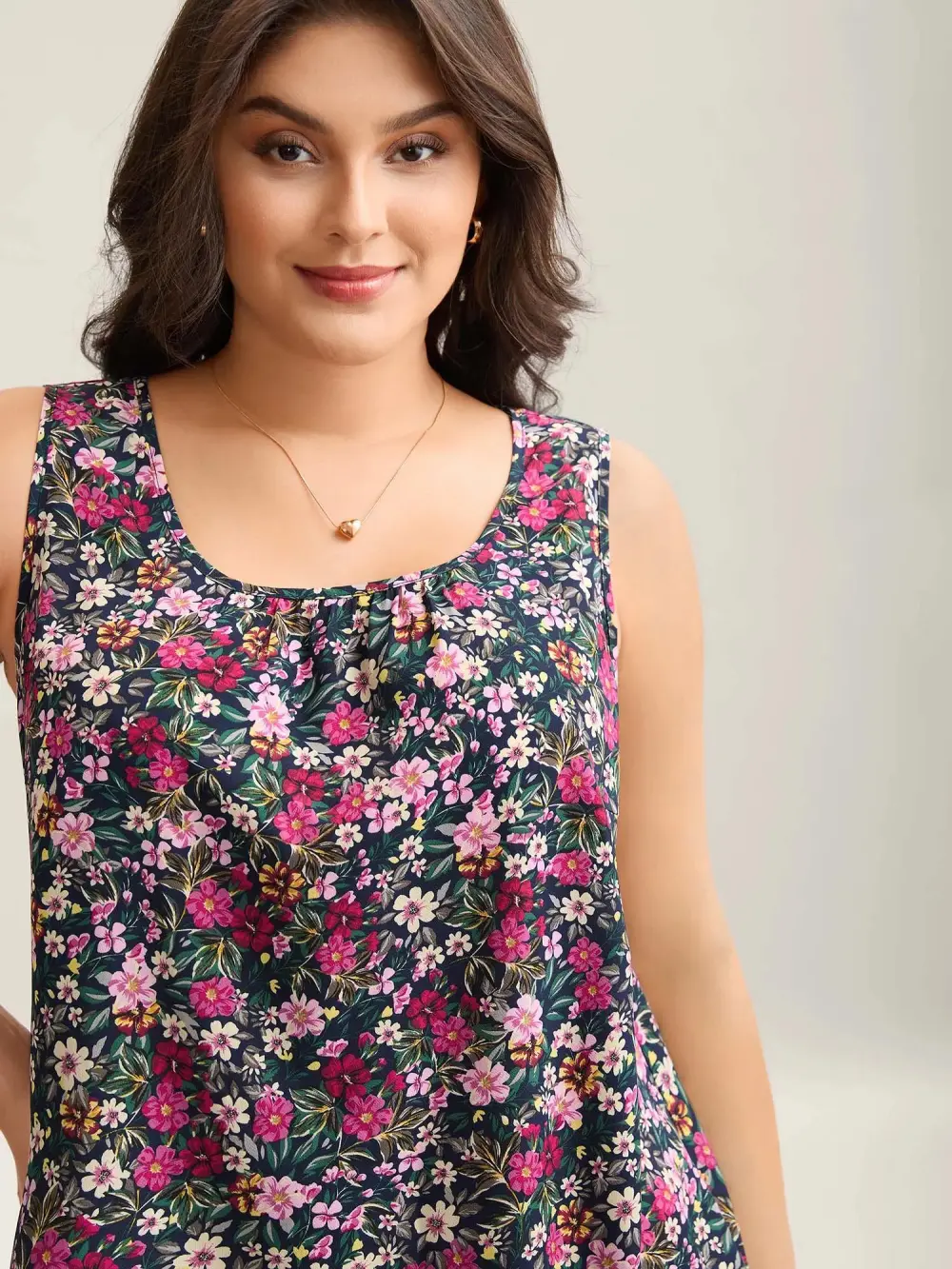 Floral Print Incarnadine Pink Plus Size Swimdress Top