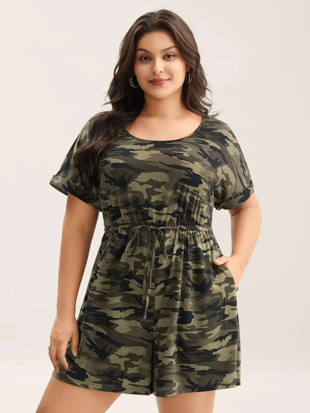 Plain Elastic Waist Medium Wash Roll Hem Jeans
