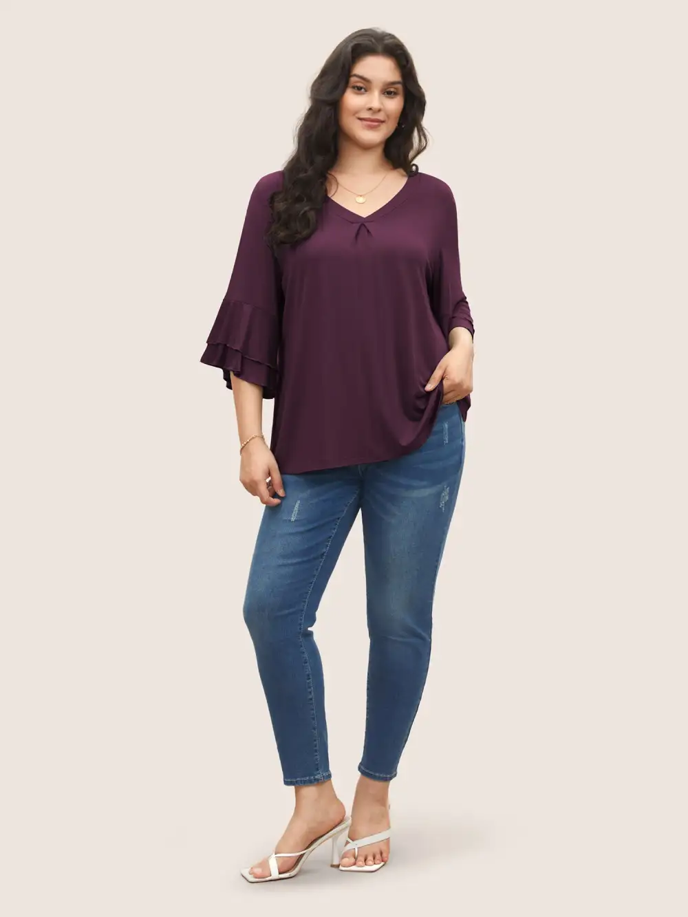 Supersoft Essentials Ruffle Layered Sleeve Pleated T-Shirt