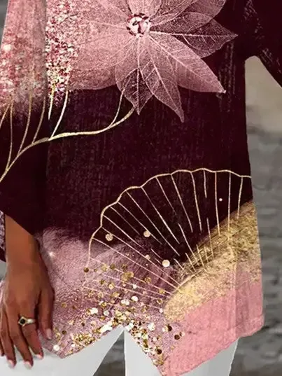 Women Asymmetrical 3/4 Sleeve Scoop Neck Floral Printed Graphic Top Dress