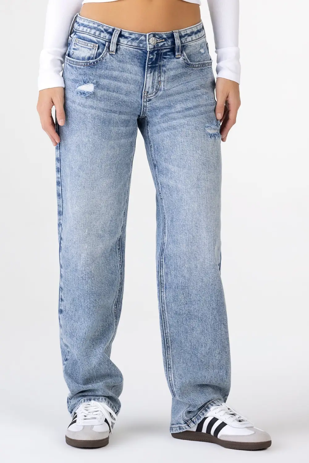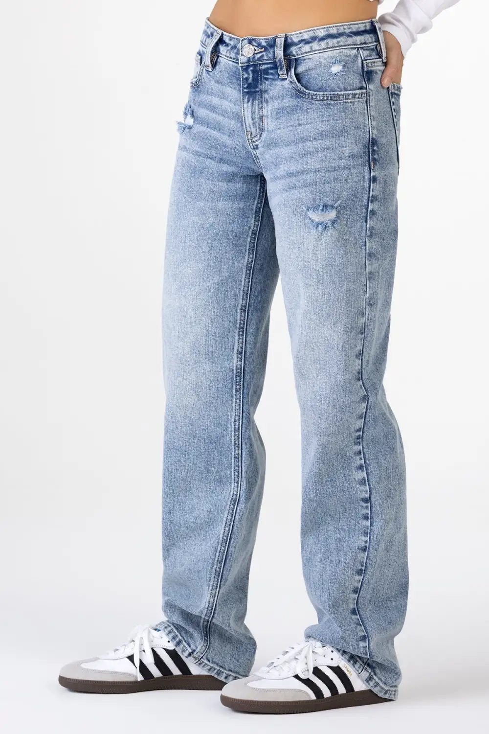 - Distress and fray detailing