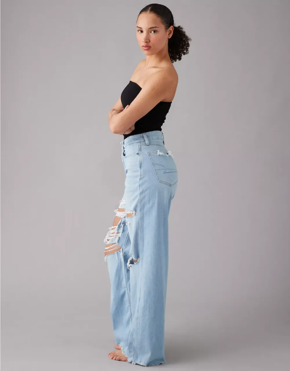 • Dreamy Drape Stretch Curvy Super High-Waisted Ripped Baggy Wide-Leg Jean